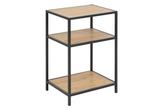 W naszej ofercie dostępne są różne meble z serii Seaford przeznaczone do pomieszczeń o różnym przeznaczeniu i zastosowaniu - tutaj nowoczesny stolik nocny w stylu industrialnym z 3 półkami o wymiarach 42 x 35 cm i całkowitej wysokości 63 cm.