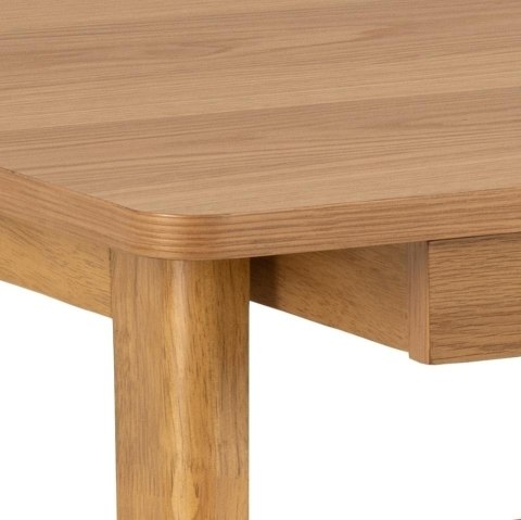 Odmień swoje miejsce pracy dzięki temu nowoczesnemu prostokątnemu biurku Barnett. Elegancka konstrukcja ma blat z płyty MDF i forniru dębowego i małą szufladę po prawej stronie. Biurko posiada solidną podstawę z drewna kauczukowego barwionego na kolor dębu. Biurko płynnie łączy styl japandi i funkcjonalność. Wbudowana szuflada zwiększa organizacyjny charakter mebla, dzięki czemu jest to idealny wybór do niedużego biura. Wymaga montażu. Wymiary kartonu: 132x70x15cm, Waga: 21kg