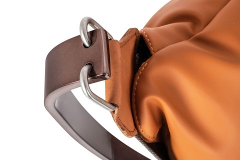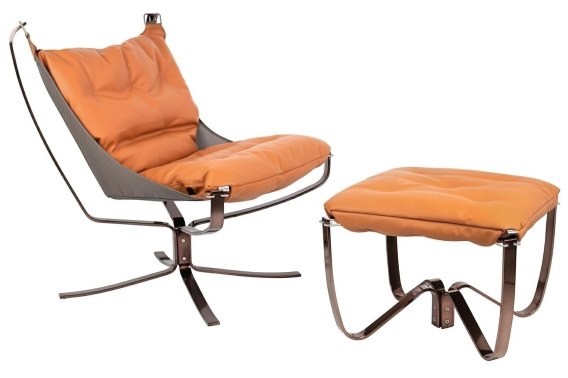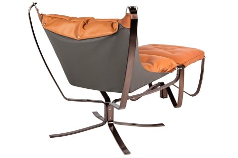 Fotel ARNI LOW z podnóżkiem - pomarańczowa ekoskóra, podstawa ciemna miedziana