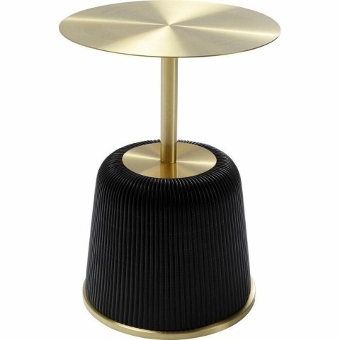 Okrągły blat wykonany z satynowanej stali w złotym kolorze nadaje elegancji i wyrafinowania.