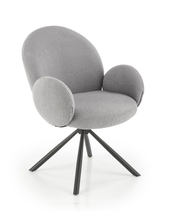 Wymiary: 64/63/90/46 cm, funkcja obracania, materiał: tkanina - boucle / stal malowana proszkowo, kolor: popielaty