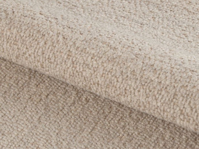 Beżowy odcień to ciepły, neutralny ton, który współgra z różnymi stylami wnętrz – od minimalistycznych po bardziej eklektyczne aranżacje. Struktura bouclé sprawia, że drobne zabrudzenia są mniej widoczne niż na gładkich materiałach. Tkanina jest miękka w dotyku, przyjemna podczas siedzenia.