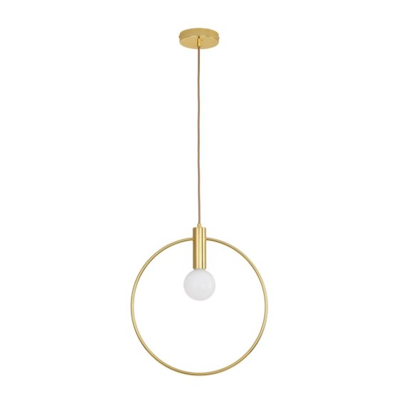 Jej okrągła, złota, cienka rama wykonana z delikatnego, metalowego pręta nadaje wnętrzom delikatnego charakteru. Formę dopełnia designerski złoty przewód w oplocie tekstylnym.