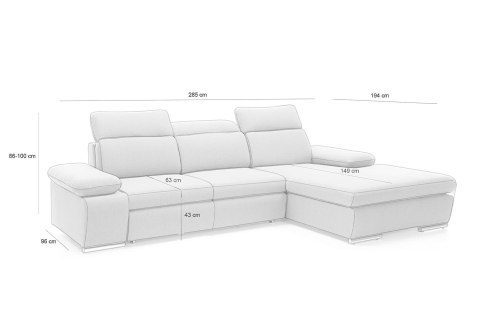 Wymiary: wys. 100 cm / szer. 285 cm / gł. 194 cm