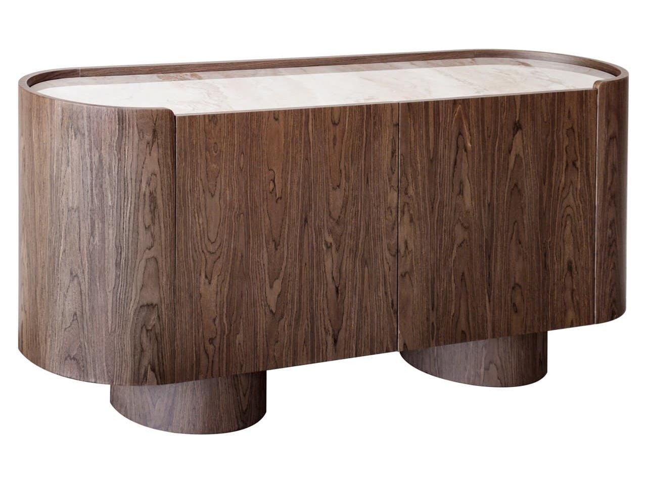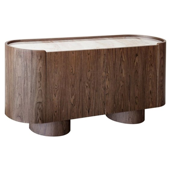 Rzeźbiarskie nogi, miękko zaokrąglone krawędzie, połączenie drewna z ceramiką – komoda Callahan wpisuje się w nurt organic modern i quiet luxury, gdzie liczy się forma, materiał i wykończenie, a nie ilość detali. To mebel, który równie dobrze sprawdzi się w salonie z japońskimi akcentami, jak i w jadalni utrzymanej w stylu contemporary luxury.