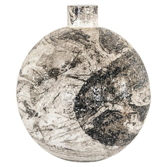 Kulista forma w połączeniu z czarno-białą, mozaikową fakturą tworzy wyjątkowy efekt wizualny, który doskonale odnajdzie się zarówno w nowoczesnych, jak i eklektycznych wnętrzach. Wykonana z metalu, charakteryzuje się trwałością i solidnym wykonaniem.