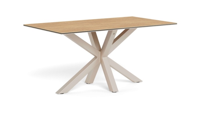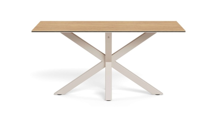 Stół Heaven 160x90 cm – ceramiczny blat ze wzorem dzikiego dębu i stalowa podstawa