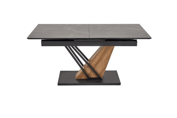 VOLANT 140 stół rozkładany, blat - czarny marmur, nogi - dąb złoty / czarny